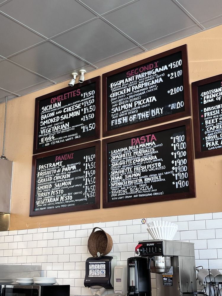 “ We've driven by this place so many times and finally got a chance to try it. This is a cute local Italian restaurant with breakfast/brunch, pasta, panini options available. They are only open till 2pm, so no dinner. It's the place you can get pasta for breakfast with no one judging. Omelette was decent with some greens and a piece of bread. We tried both the Sicilian omelette and the bacon and cheese ones. Since almost every table got pasta, we caved and ordered spaghetti with fresh clams. It's one of the specials that day, and it was really yummy. The owner seemed really nice, we will definitely come back sometime to try other pasta dishes. ”